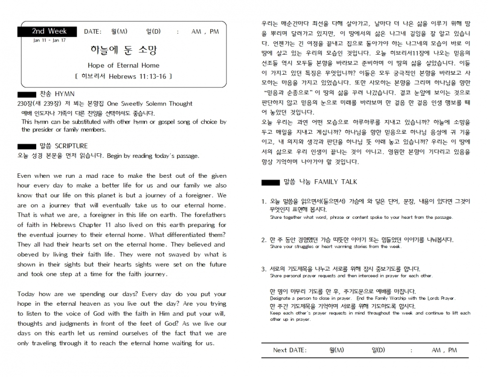 1월 11일 가정 예배서