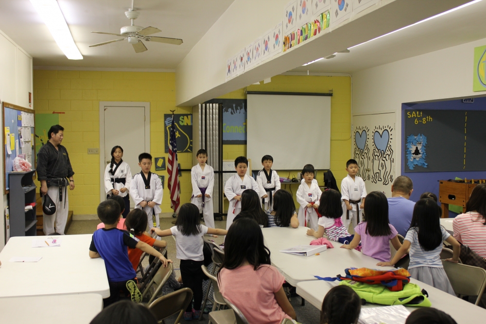 엘리콧 시티 한국학교에서는 4월 22일(금) 남스 태권도의 남정구 관장님과 어린이들을 초대해, 태권도 시범을 보는 것뿐만 아니라 직접 체험해 보는 시간도 가졌습니다.