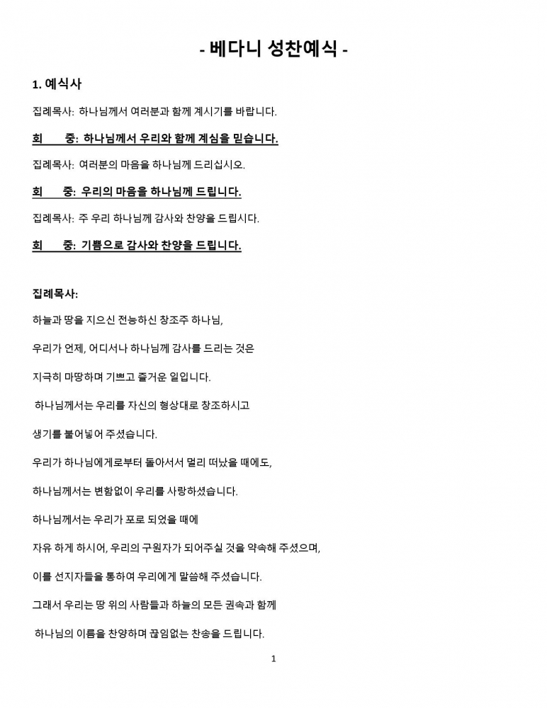 성찬예식 예문