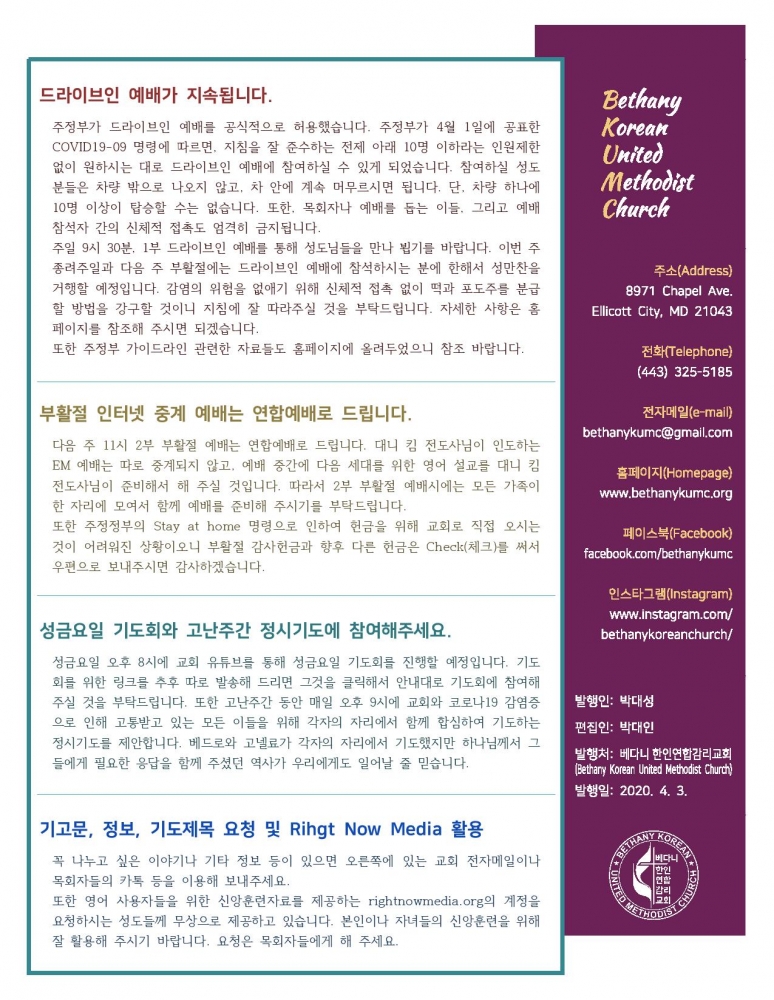 HOME > 베다니 소식