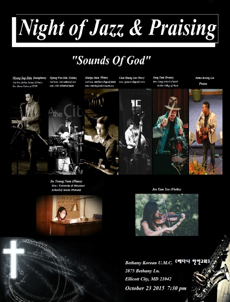 10월 23일(금) 오후 7:30에 찬양 콘서트가 있습니다.