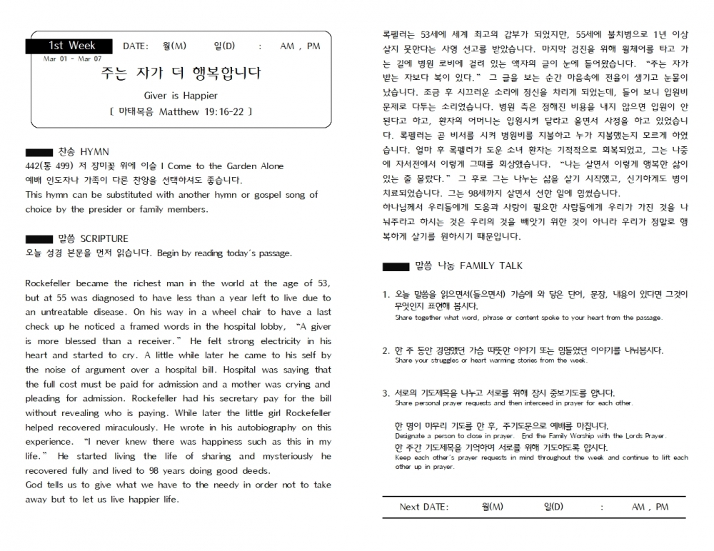 3월 1일 가정 예배서