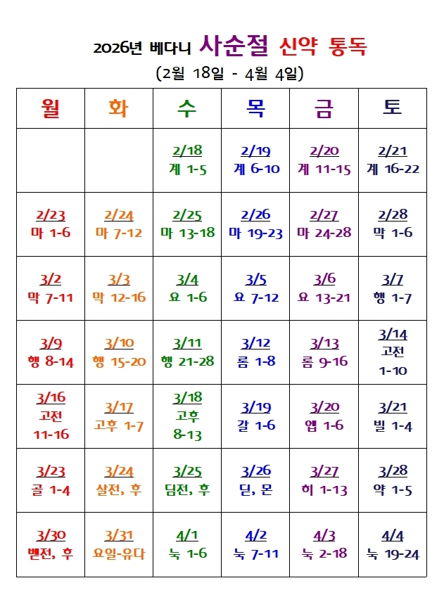 마태복음(2월 23, 24, 25, 26, 27일)